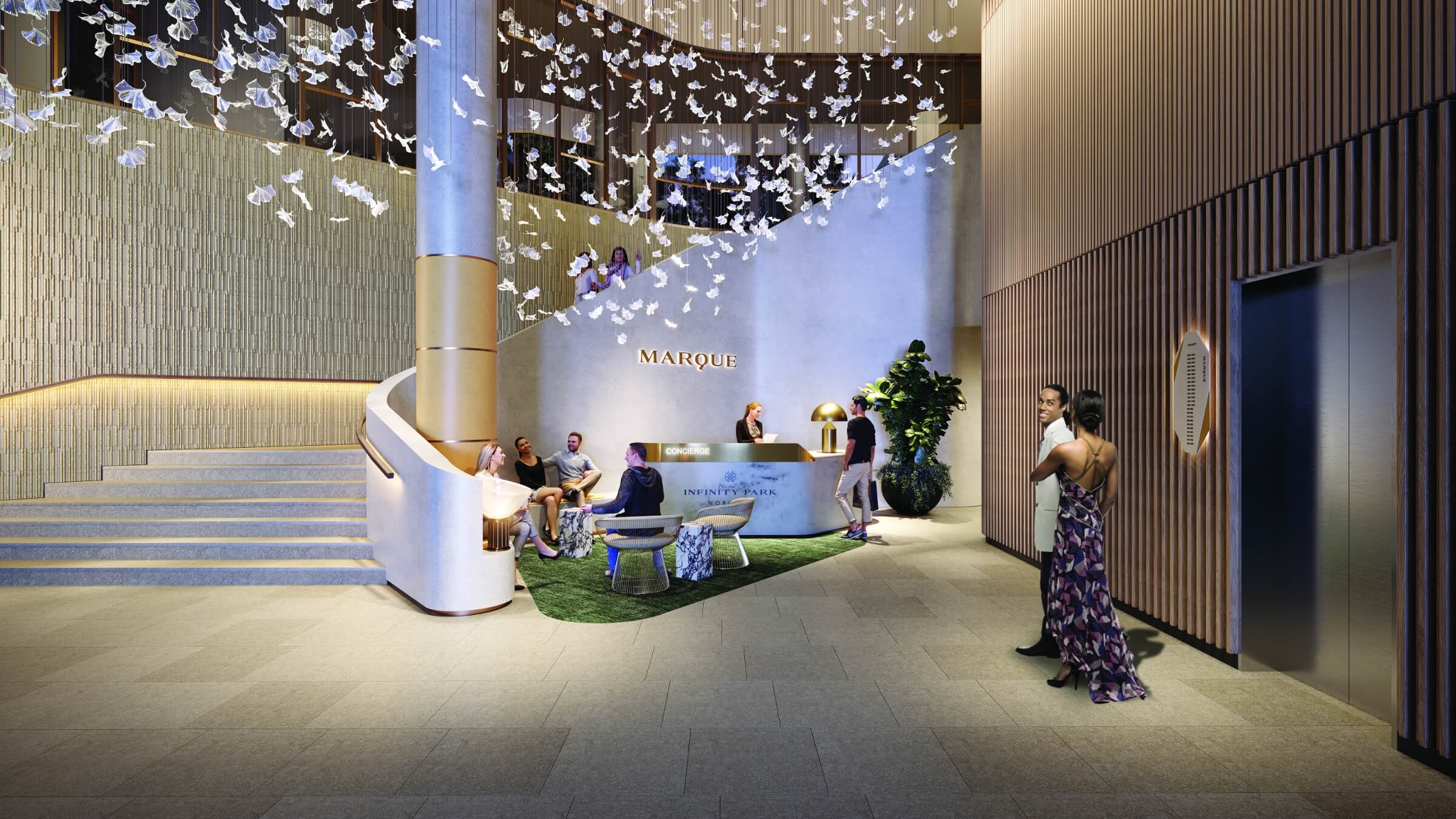 At the heart of Infinity Park, the resort-style pool and lush garden oasis form an immersive sanctuary.